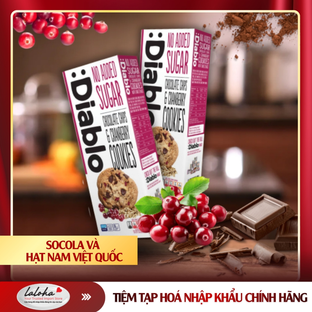 Diablo Hazelnut Cookies No Added Sugar là loại bánh quy giòn, thơm ngon, được chế biến không thêm đường bổ sung, phù hợp cho người muốn kiểm soát lượng đường hoặc ăn kiêng.