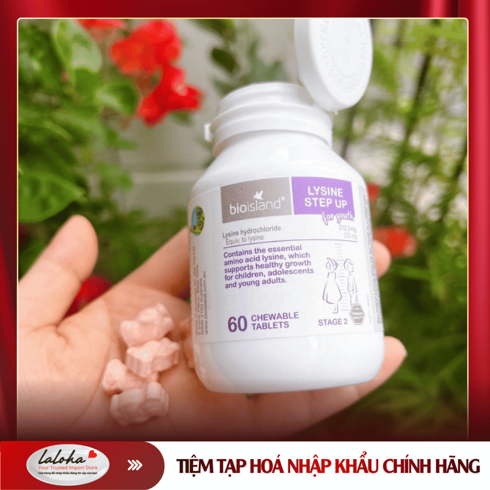 Bioisland Lysine Step Up for Youth là sản phẩm bổ sung Lysine nổi tiếng đến từ Úc, giúp hỗ trợ tăng trưởng chiều cao và phát triển thể chất khỏe mạnh cho trẻ từ 6 tuổi đến 24 tuổi. Lysine là axit amin thiết yếu giúp tăng khả năng hấp thu canxi, thúc đẩy phát triển xương và mô cơ, đồng thời tăng cường miễn dịch và khả năng ăn uống cho trẻ. Sản phẩm có hương vị tự nhiên dễ nhai, phù hợp với trẻ em và thanh thiếu niên đang trong giai đoạn phát triển chiều cao